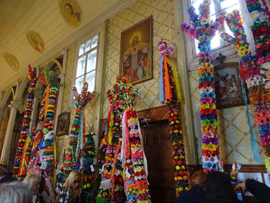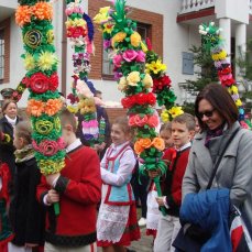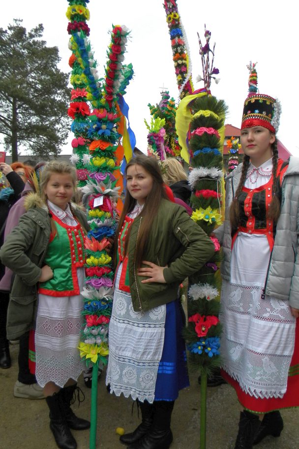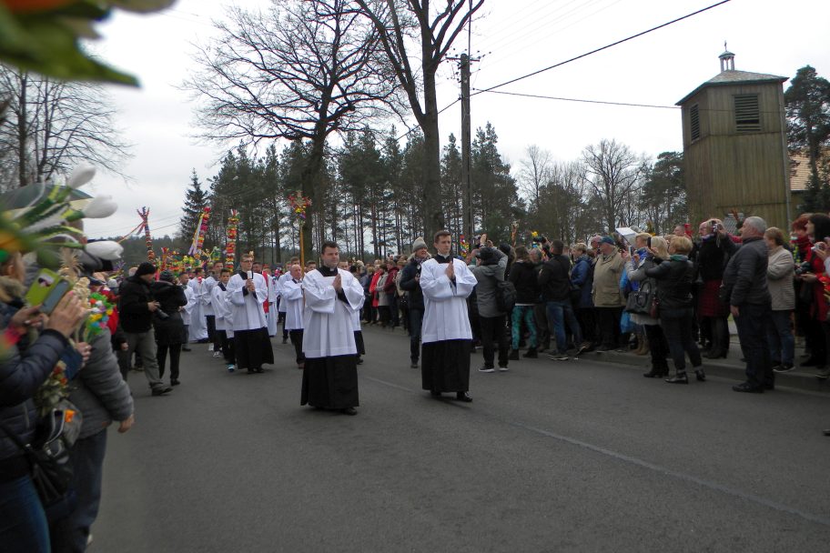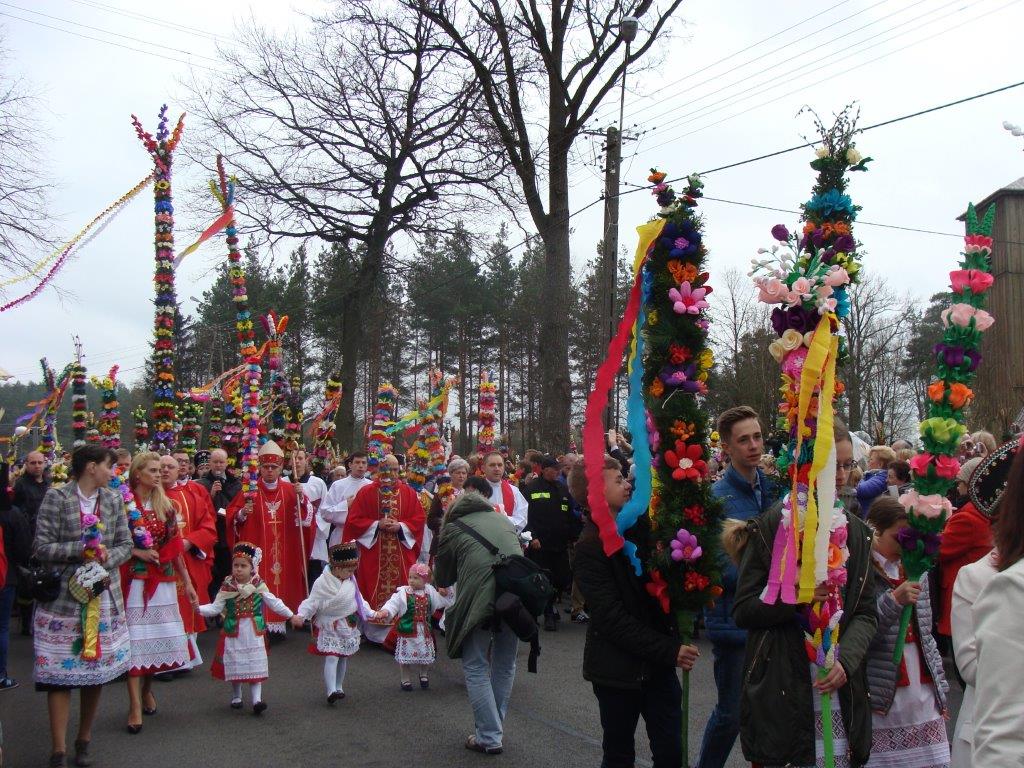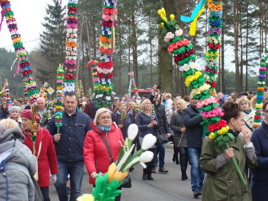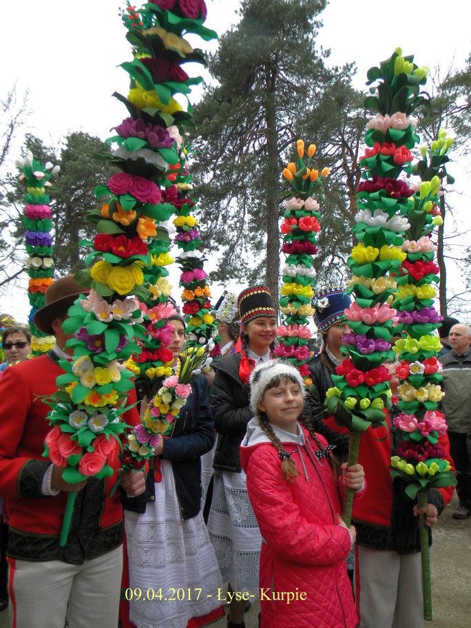 Co roku w Niedziele Palmową różne stacje telewizyjne przedstawiają migawki z uroczystej procesji w Łysych. Niezwykłe kolorowe kilkumetrowe kurpiowskie palmy nas zachwycały.Decyzja podjęta, w 2017r zobaczmy to na własne oczy. 9 kwietnia 2017 wyruszamy na Kurpie. Kurpiowskie palmy wielkanocne charakteryzuje przede wszystkim rozmiar. Powstają na bazie pnia ściętego drzewka – leszczyny albo sosny. Do ozdobienia kurpiowskich palm wielkanocnych wykorzystuje się roślinność leśną oraz kwiaty z bibuły i bibułowe wstążki. Palmy – zgodnie z tradycją – niesiono w uroczystej procesji, która przeszła ze starego kościoła św. Anny w Łysych do nowego pod wezwaniem Chrystusa Króla. Od 1969 roku uroczystościom towarzyszy konkurs na najpiękniejszą palmę kurpiowską.Niedziela Palmowa w Łysych stała się dużą imprezą folklorystyczną, której towarzyszy jarmark kurpiowskiej sztuki ludowej i występy zespołów ludowych.